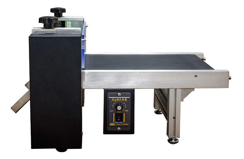 壓殼機用于生產過程中將試紙條壓合在塑料卡殼中。試紙條裝入塑料底卡后將上蓋對準底卡蓋上,即可放上壓殼機輸送帶,然后由與輸送帶同步速度的橡膠棍壓緊閉合。適用于卡盒式試紙和其他類壓合產品批量生產用戶